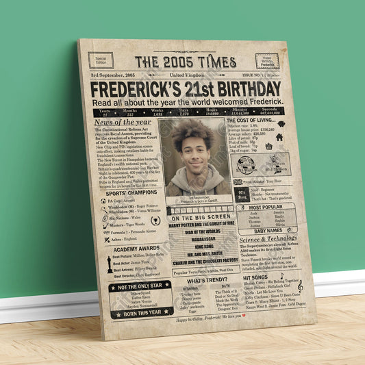 Personalised 21st Birthday Gift: A Printable UK Birthday Poster of 2005