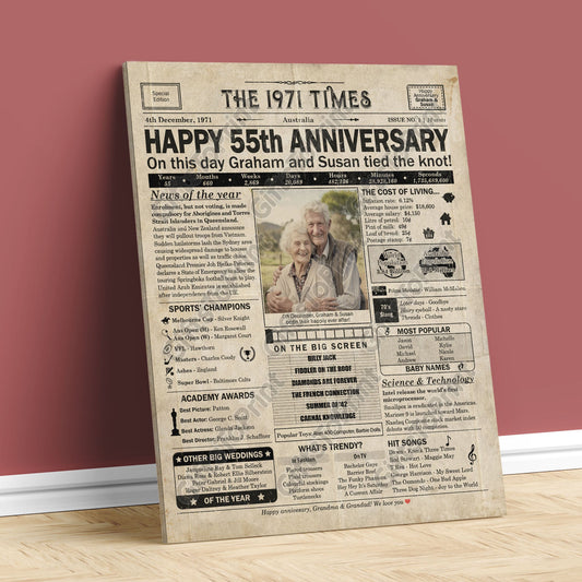 Personalised 55th Anniversary Gift: A Printable AUSTRALIAN Newspaper Poster of 1971