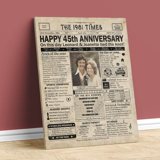 Personalised 45th Anniversary Gift: A Printable AUSTRALIAN Newspaper Poster of 1981