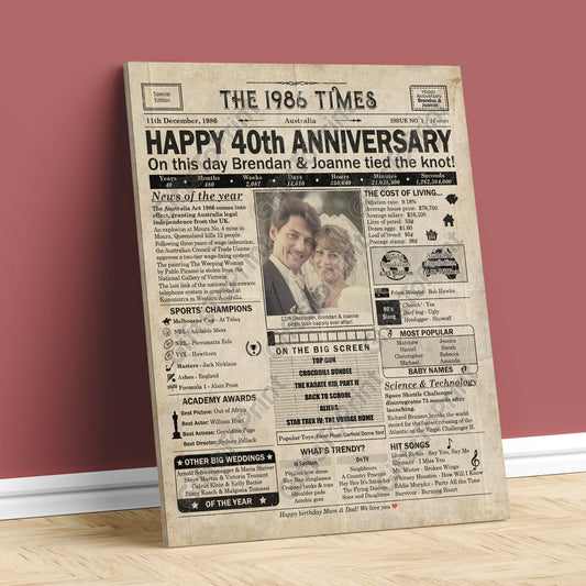 Personalised 40th Anniversary Gift: A Printable AUSTRALIAN Newspaper Poster of 1986