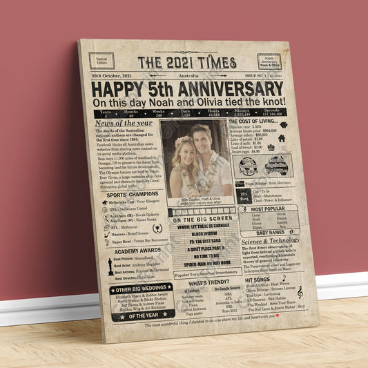 Personalised 5th Anniversary Gift: A Printable AUSTRALIAN Newspaper Poster of 2021