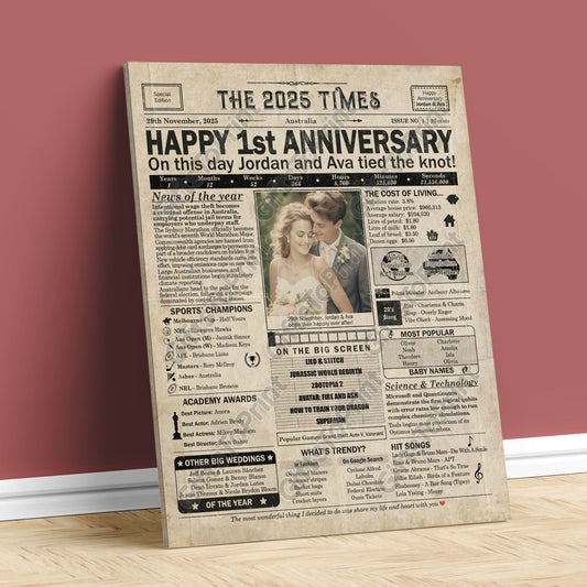 Personalised 1st Anniversary Gift: A Printable AUSTRALIAN Newspaper Poster of 2025