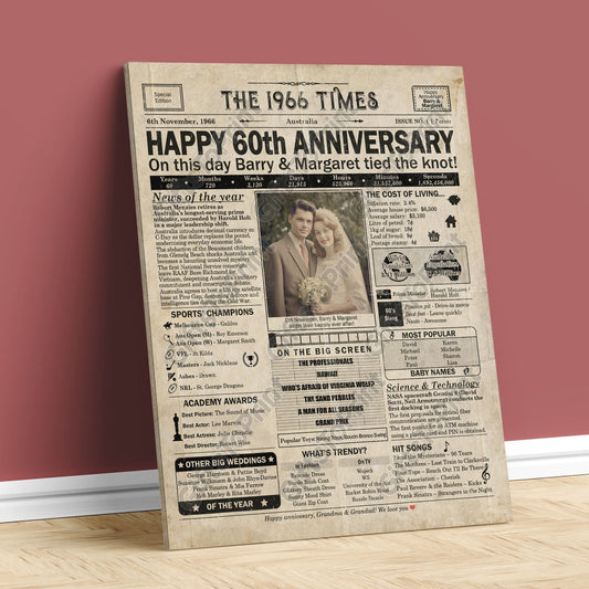 Personalised 60th Anniversary Gift: A Printable AUSTRALIAN Newspaper Poster of 1966
