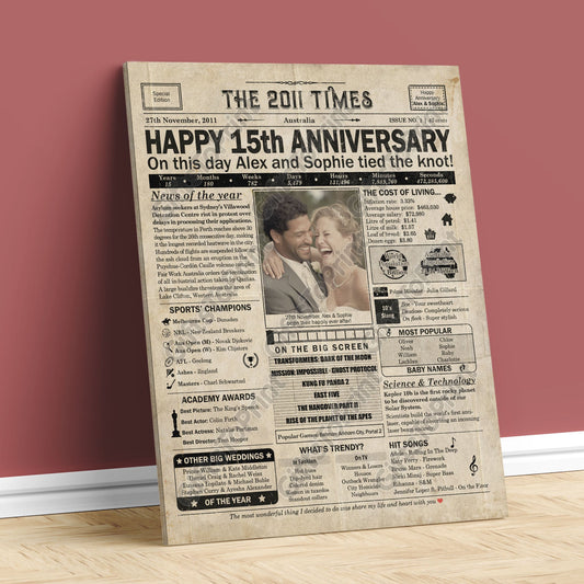 Personalised 15th Anniversary Gift: A Printable AUSTRALIAN Newspaper Poster of 2011