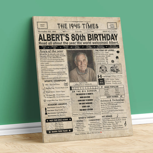Personalized 80th Birthday Gift: A Printable CANADIAN Birthday Poster of 1945