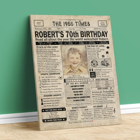 Personalized 70th Birthday Gift: A Printable CANADIAN Birthday Poster of 1955