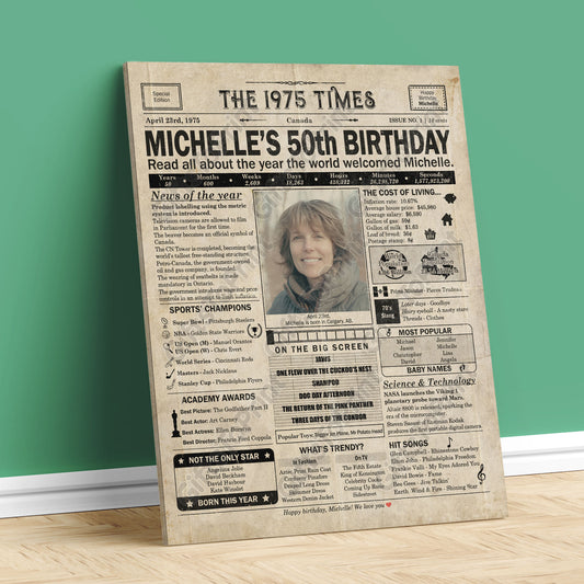Personalized 50th Birthday Gift: A Printable CANADIAN Birthday Poster of 1975