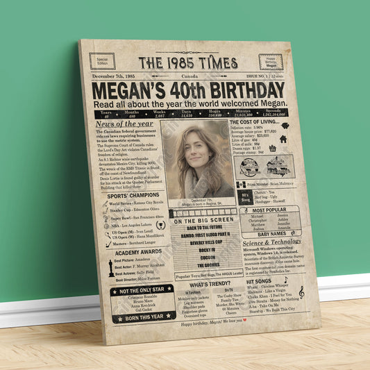 Personalized 40th Birthday Gift: A Printable CANADIAN Birthday Poster of 1985