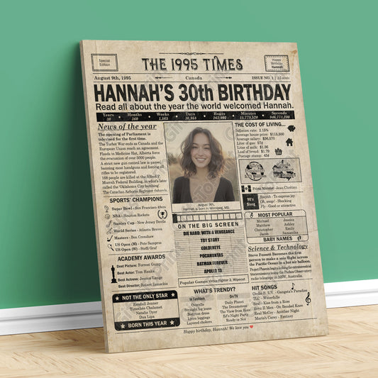 Personalized 30th Birthday Gift: A Printable CANADIAN Birthday Poster of 1995