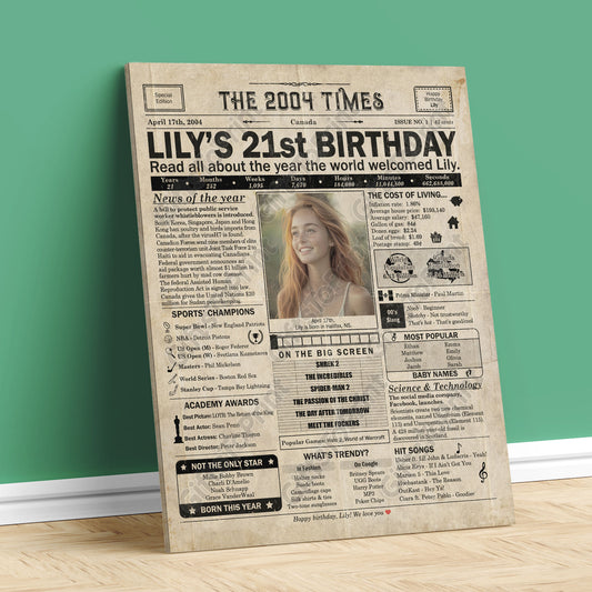 Personalized 21st Birthday Gift: A Printable CANADIAN Birthday Poster of 2004