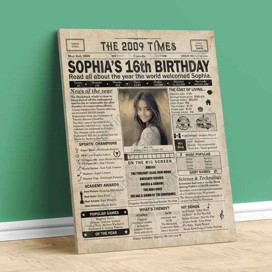 Personalized 16th Birthday Gift: A Printable CANADIAN Birthday Poster of 2009