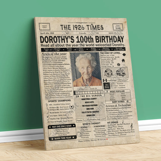 Personalized 100th Birthday Gift: A Printable CANADIAN Birthday Poster of 1926