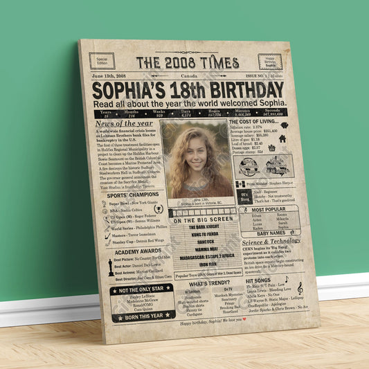 Personalized 18th Birthday Gift: A Printable CANADIAN Birthday Poster of 2008