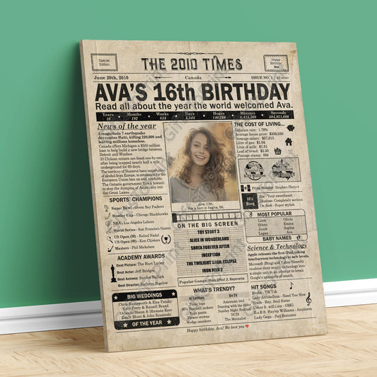 Personalized 16th Birthday Gift: A Printable CANADIAN Birthday Poster of 2010