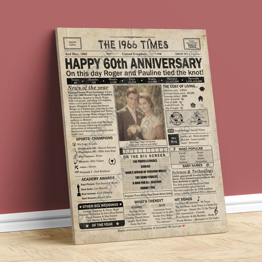 Personalised 60th Anniversary Gift: A Printable UK Newspaper Poster of 1966