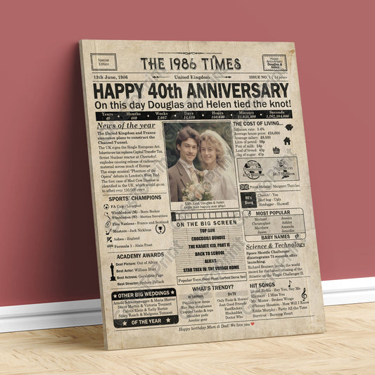 Personalised 40th Anniversary Gift: A Printable UK Newspaper Poster of 1986