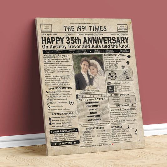 Personalised 35th Anniversary Gift: A Printable UK Newspaper Poster of 1991