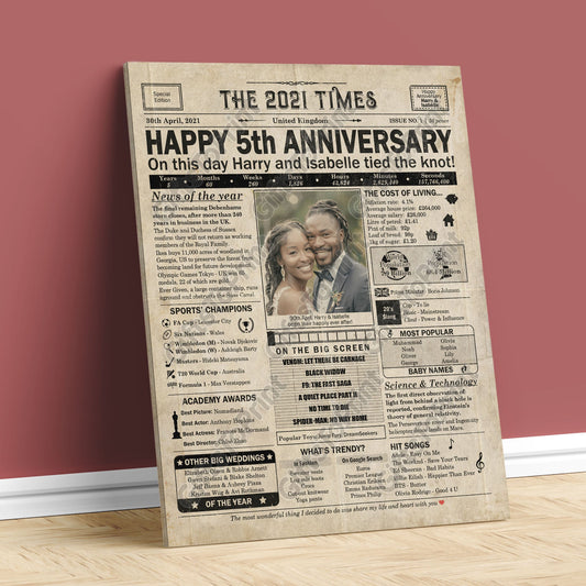 Personalised 5th Anniversary Gift: A Printable UK Newspaper Poster of 2021