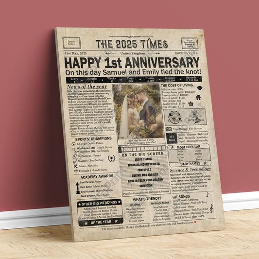Personalised 1st Anniversary Gift: A Printable UK Newspaper Poster of 2025