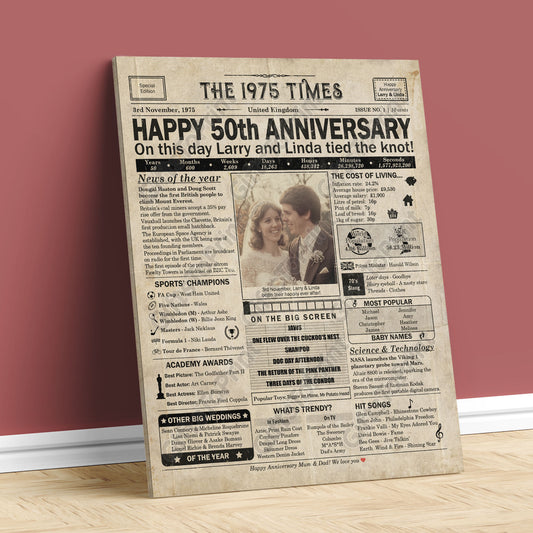 Personalised 50th Anniversary Gift: A Printable UK Newspaper Poster of 1975