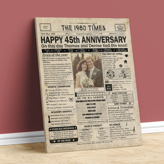 Personalised 45th Anniversary Gift: A Printable UK Newspaper Poster of 1980
