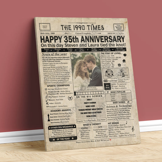 Personalised 35th Anniversary Gift: A Printable UK Newspaper Poster of 1990
