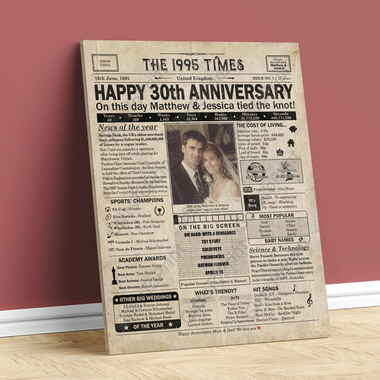 Personalised 30th Anniversary Gift: A Printable UK Newspaper Poster of 1995