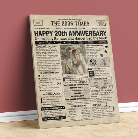 Personalised 20th Anniversary Gift: A Printable UK Newspaper Poster of 2005