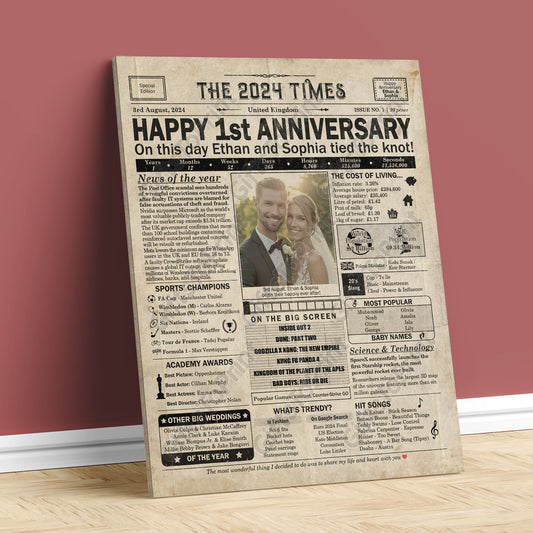 Personalised 1st Anniversary Gift: A Printable UK Newspaper Poster of 2024