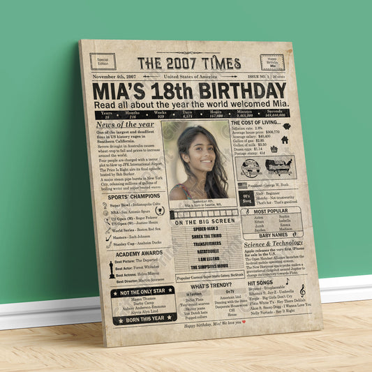 Personalized 18th Birthday Gift: A Printable US Birthday Poster of 2007