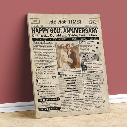 Personalised 60th Anniversary Gift: A Printable AUSTRALIAN Newspaper Poster of 1965