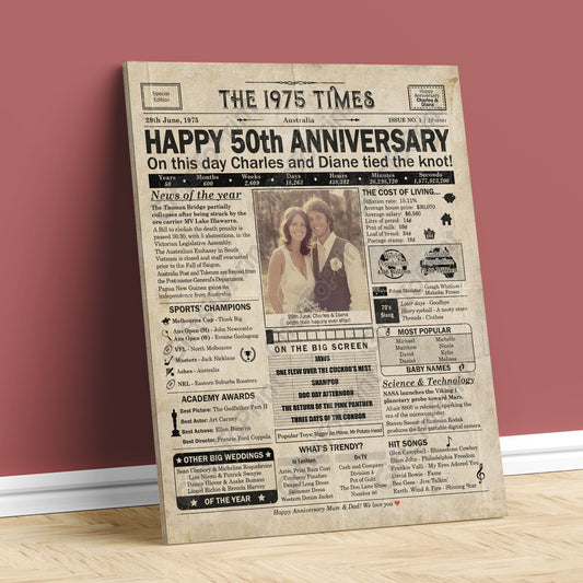 Personalised 50th Anniversary Gift: A Printable AUSTRALIAN Newspaper Poster of 1975