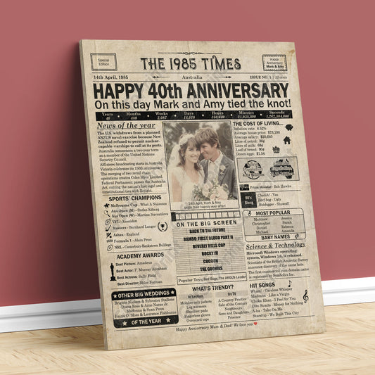 Personalised 40th Anniversary Gift: A Printable AUSTRALIAN Newspaper Poster of 1985