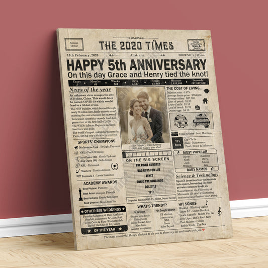 Personalised 5th Anniversary Gift: A Printable AUSTRALIAN Newspaper Poster of 2020