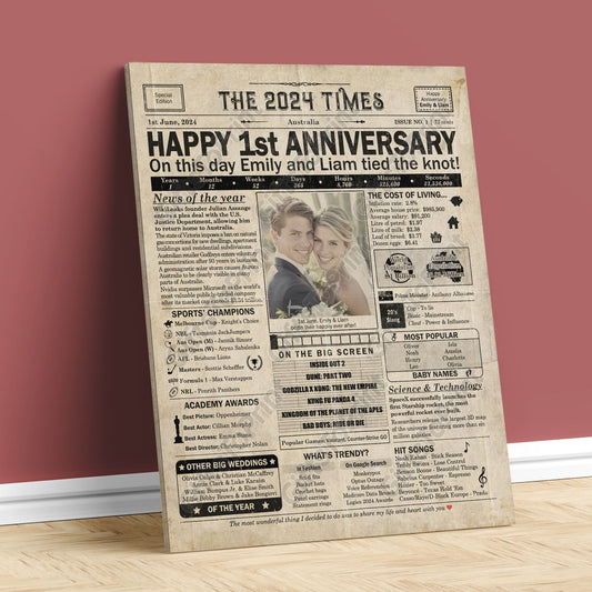 Personalised 1st Anniversary Gift: A Printable AUSTRALIAN Newspaper Poster of 2024