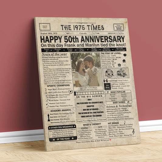 Personalized 50th Anniversary Gift: A Printable CANADIAN Newspaper Poster of 1975