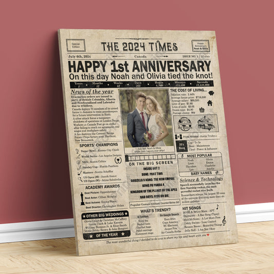 Personalized 1st Anniversary Gift: A Printable CANADIAN Newspaper Poster of 2024