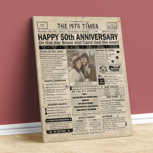 Personalized 50th Anniversary Gift: A Printable US Newspaper Poster of 1975