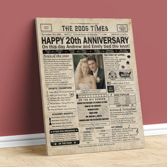 Personalized 20th Anniversary Gift: A Printable US Newspaper Poster of 2005