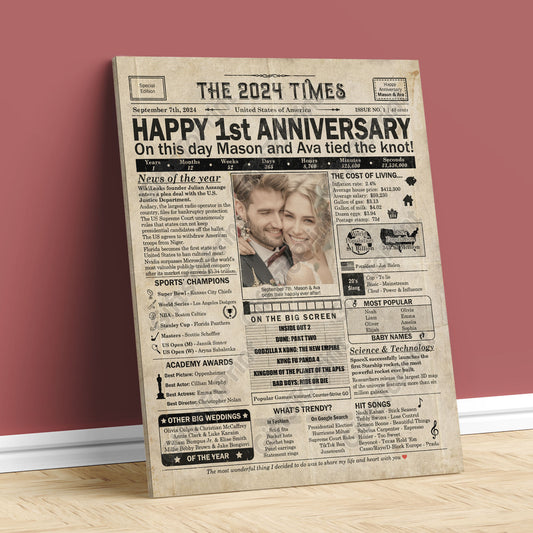 Personalized 1st Anniversary Gift: A Printable US Newspaper Poster of 2024