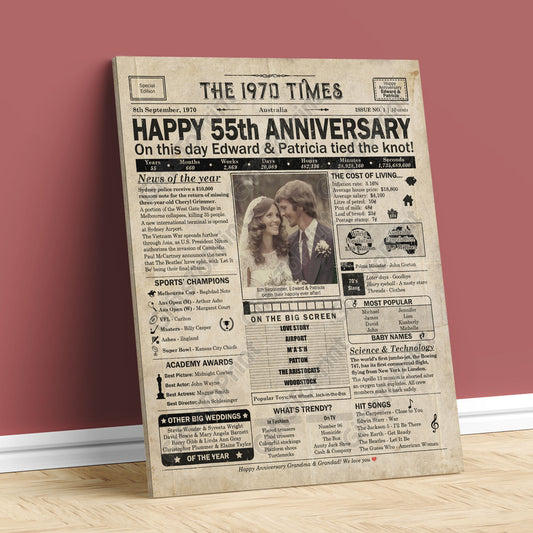 Personalised 55th Anniversary Gift: A Printable AUSTRALIAN Newspaper Poster of 1970