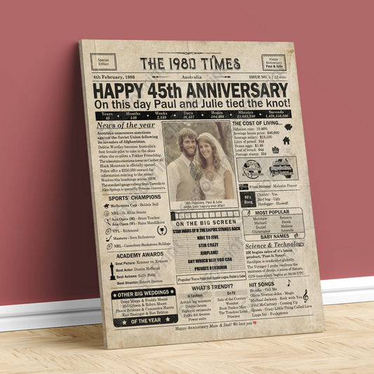 Personalised 45th Anniversary Gift: A Printable AUSTRALIAN Newspaper Poster of 1980