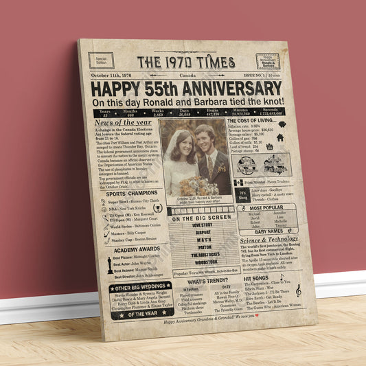 Personalized 55th Anniversary Gift: A Printable CANADIAN Newspaper Poster of 1970