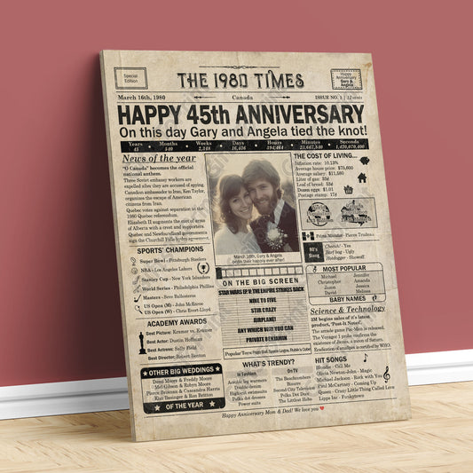 Personalized 45th Anniversary Gift: A Printable CANADIAN Newspaper Poster of 1980