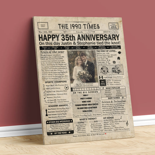 Personalized 35th Anniversary Gift: A Printable CANADIAN Newspaper Poster of 1990