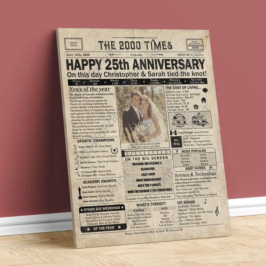 Personalized 25th Anniversary Gift: A Printable CANADIAN Newspaper Poster of 2000
