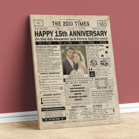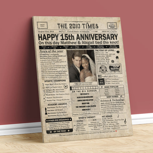 Personalized 15th Anniversary Gift: A Printable US Newspaper Poster of 2010