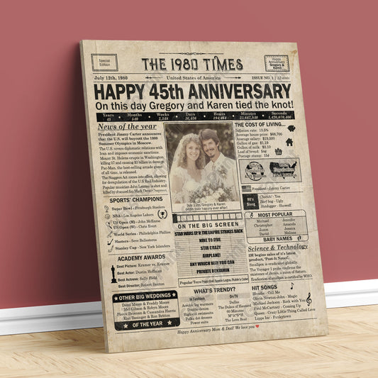 Personalized 45th Anniversary Gift: A Printable US Newspaper Poster of 1980
