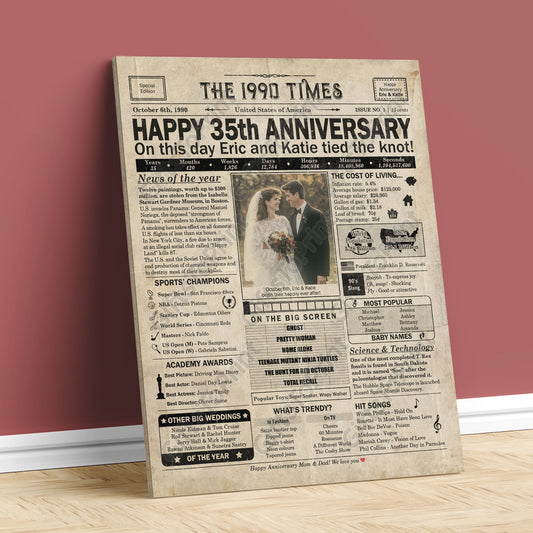 Personalized 35th Anniversary Gift: A Printable US Newspaper Poster of 1990