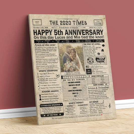 Personalized 5th Anniversary Gift: A Printable US Newspaper Poster of 2020